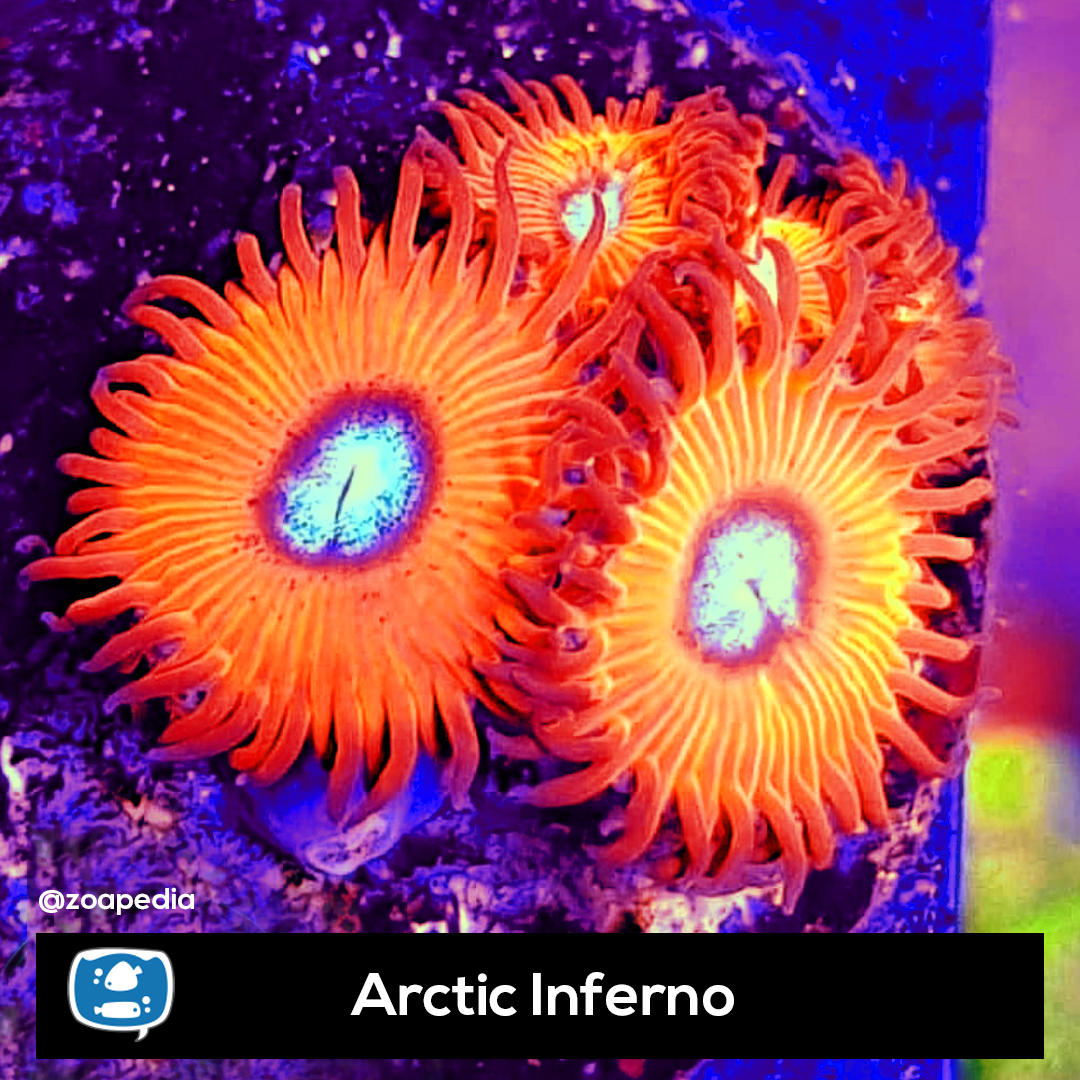 Arctic Inferno ├® um zoanthus. Suas cores incluem branco, laranja.