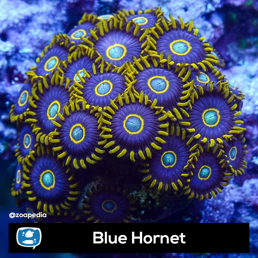 Blue Hornet ├® um zoanthus. Suas cores incluem azul, amarelo.