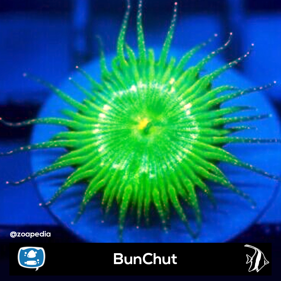 BunChut ├® um palythoa. Suas cores incluem verde, dourado.