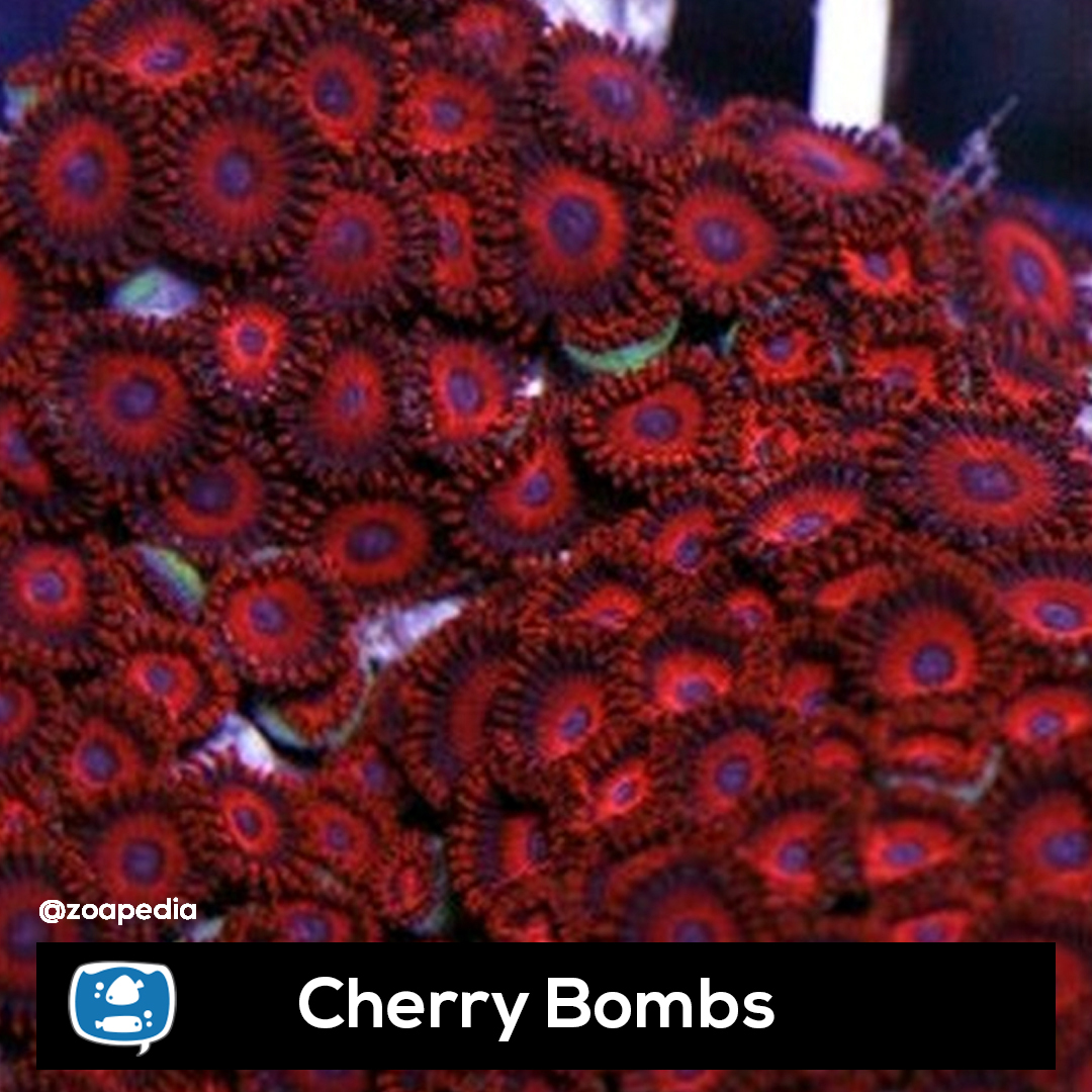 Cherry Bomb ├® um zoanthus. Suas cores incluem azul, vermelho.