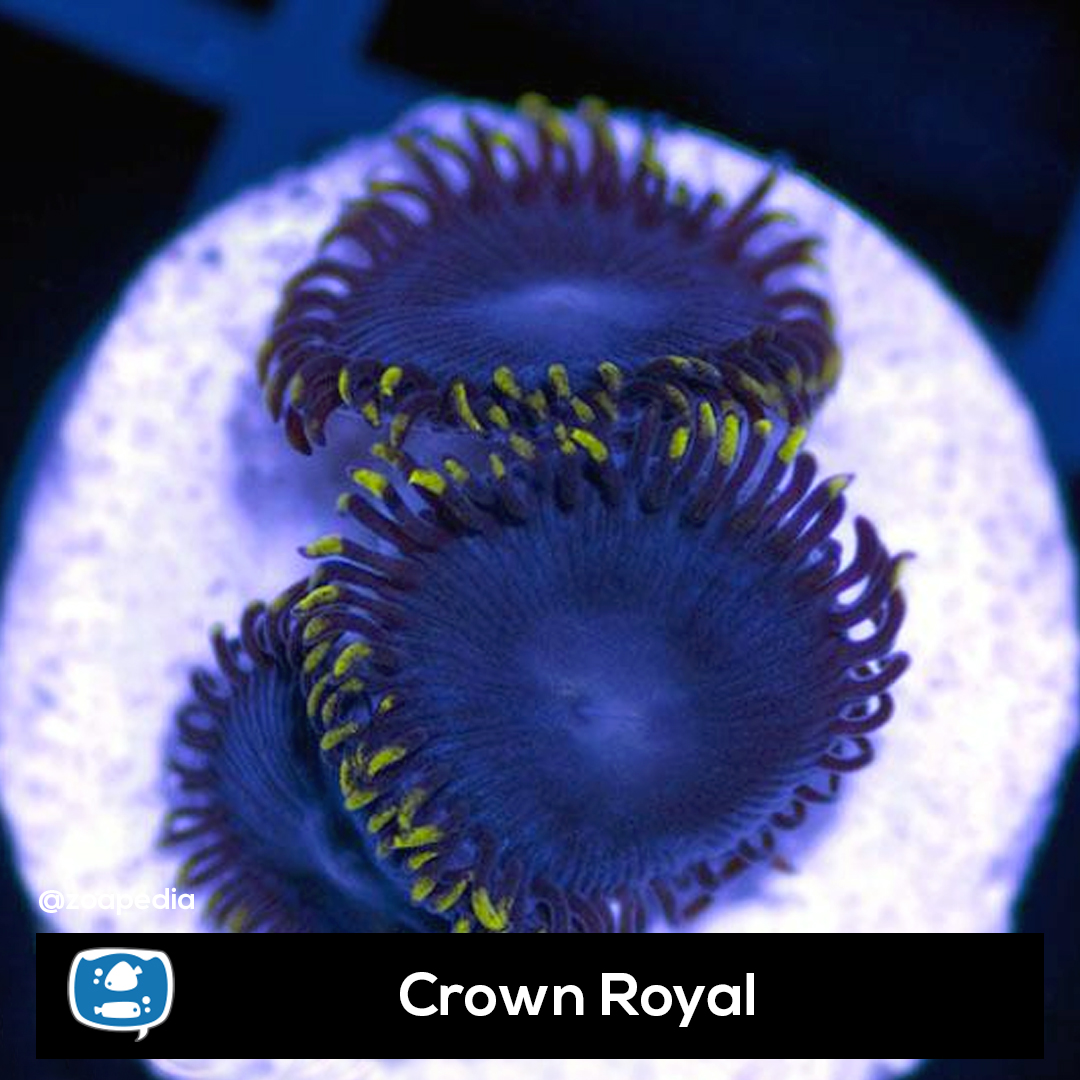 Crown Royal ├® um zoanthus. Suas cores incluem azul, amarelo.