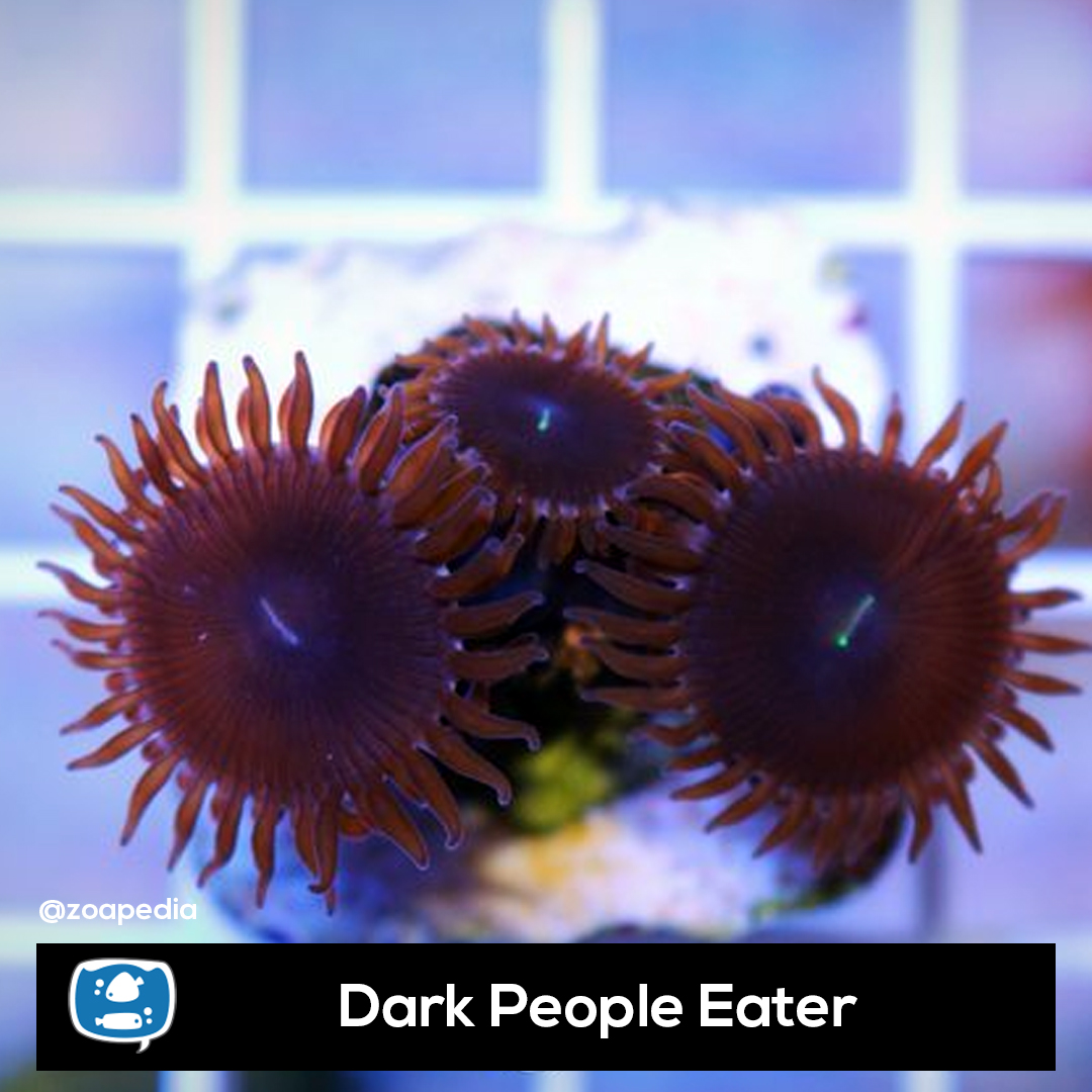 Dark People Eater ├® um palythoa. Suas cores incluem roxo, marrom.