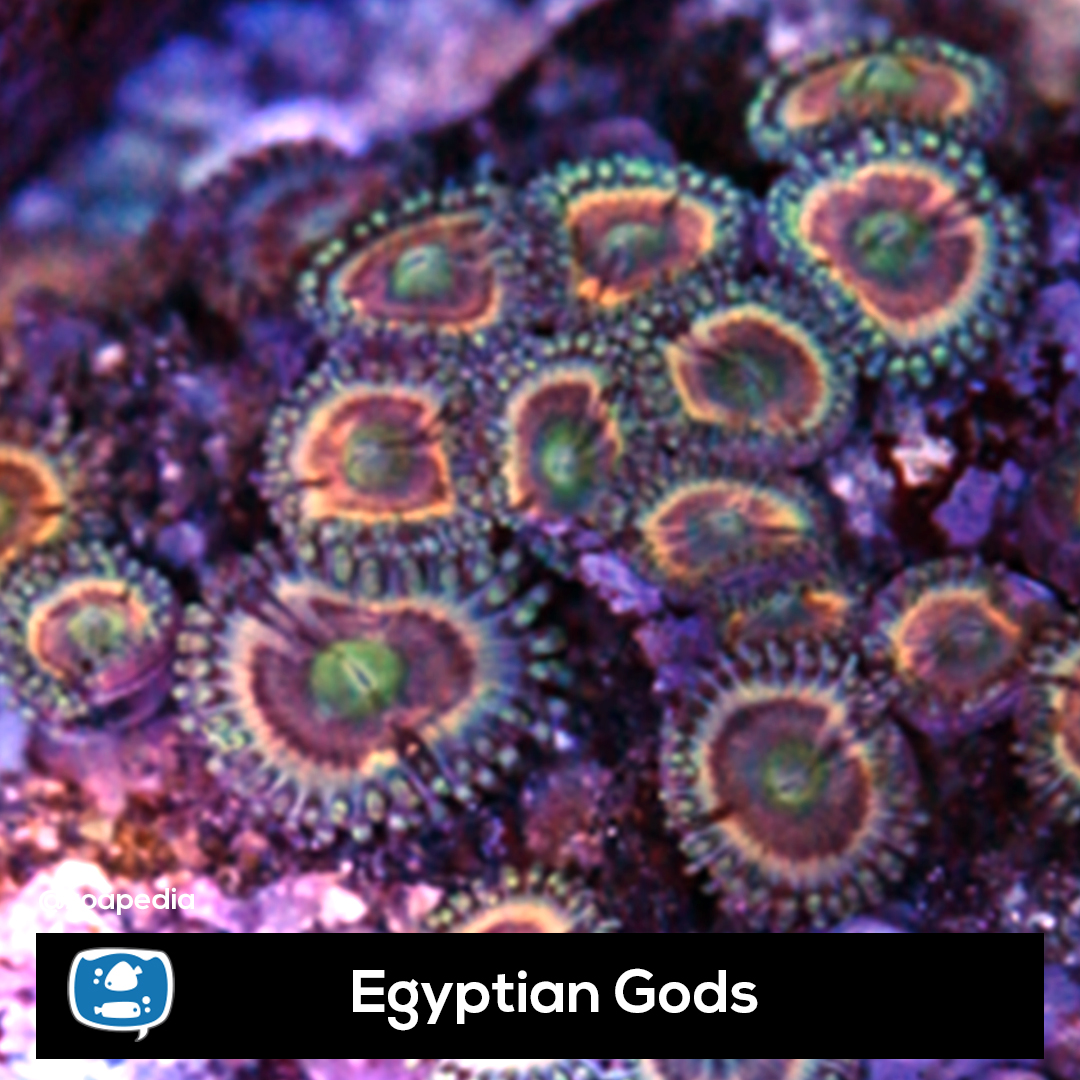 Egyptian Gods ├® um zoanthus. Suas cores incluem verde, vermelho, laranja, multicolor.