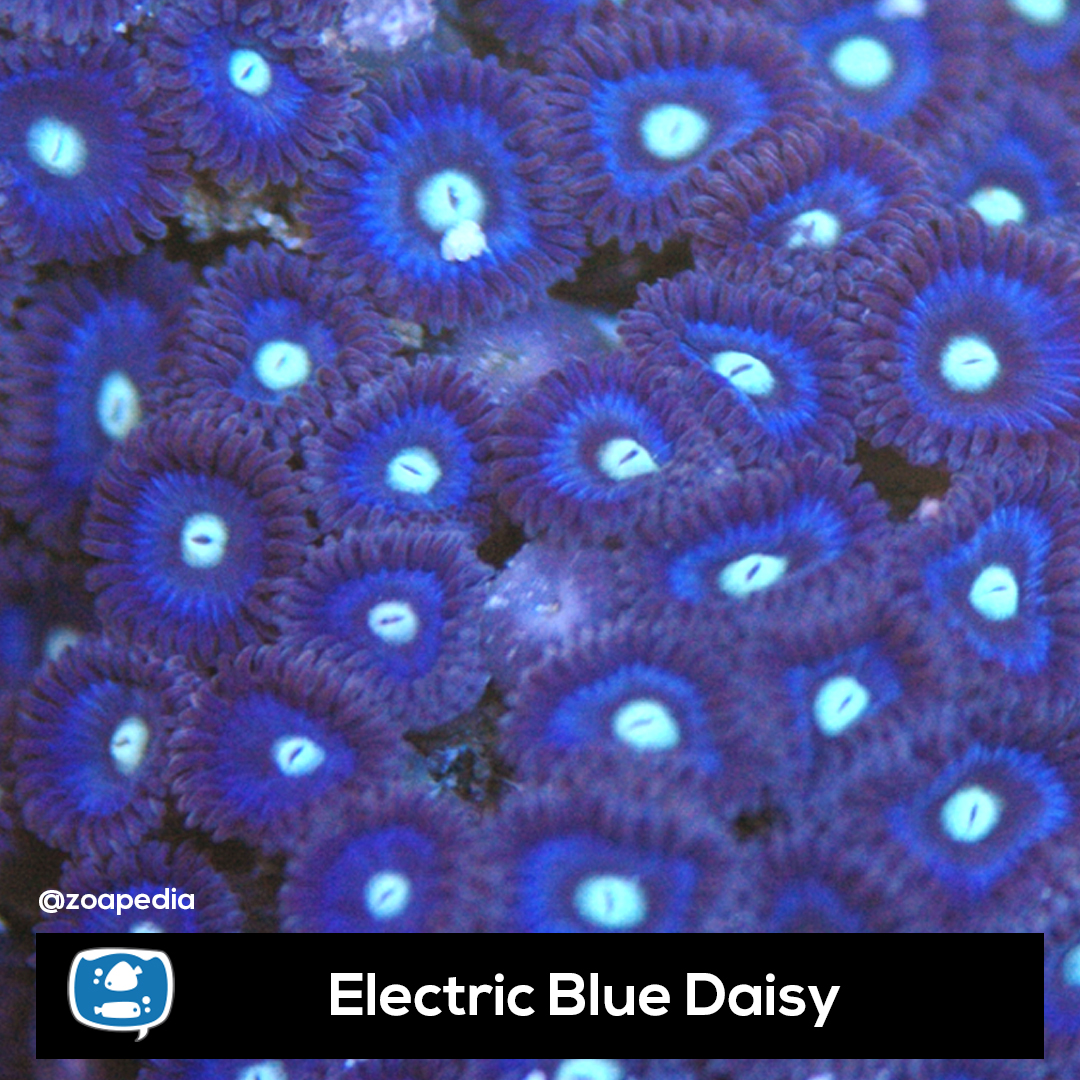 Electric Blue Daisy ├® um zoanthus. Suas cores incluem azul.