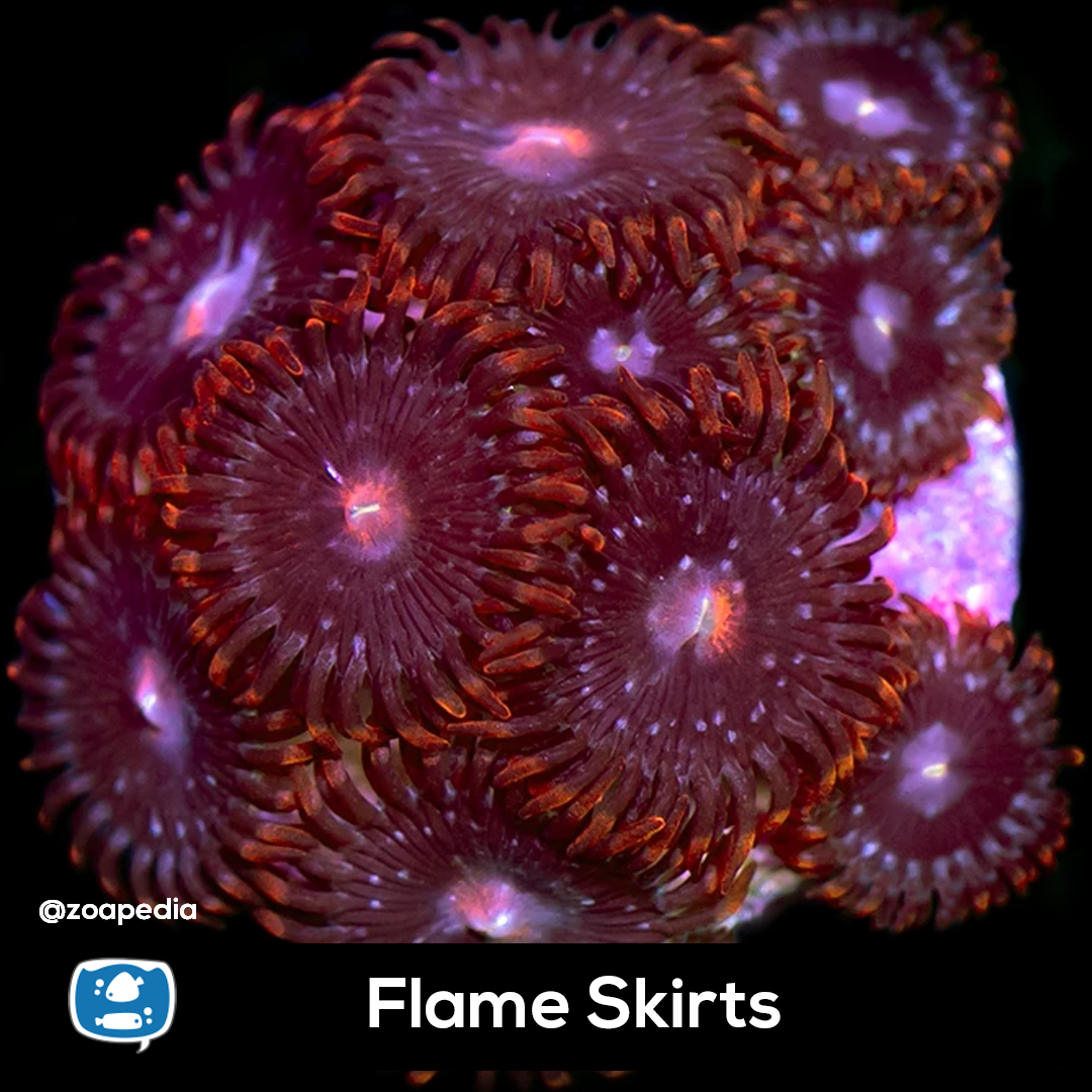 Flame Skirts ├® um zoanthus. Suas cores incluem vermelho.