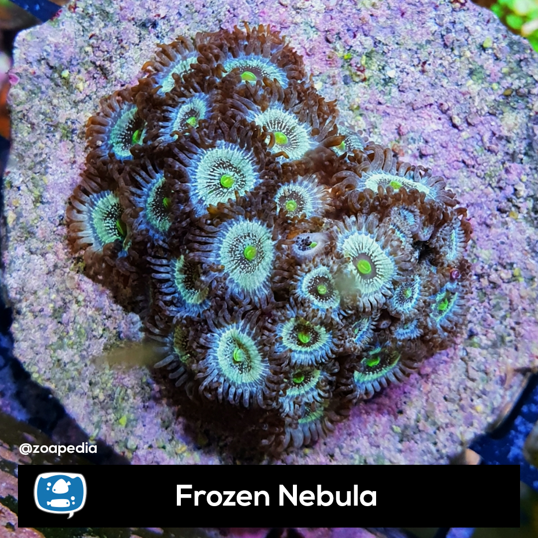 Frozen Nebula ├® um zoanthus. Suas cores incluem verde, azul.