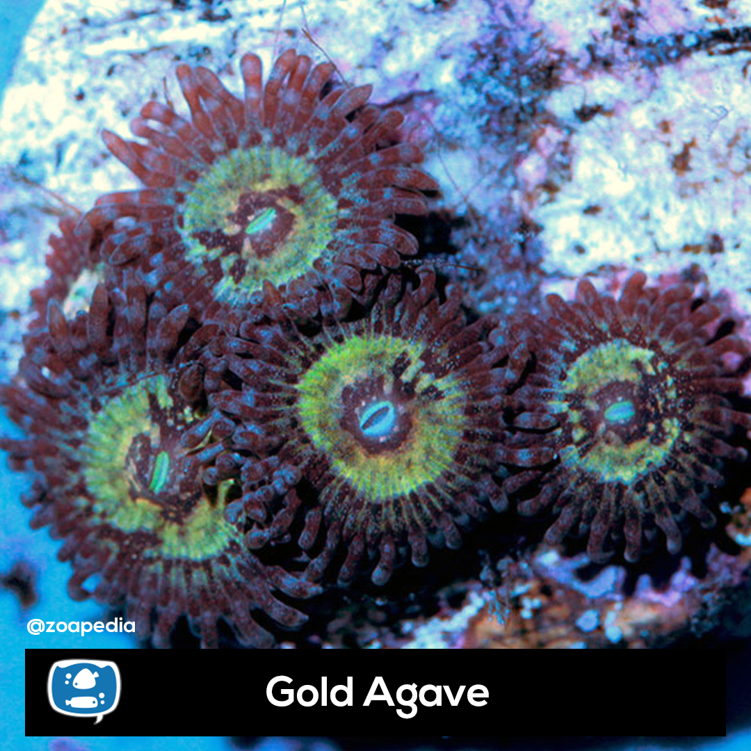 Gold Agave ├® um zoanthus. Suas cores incluem multicolor.