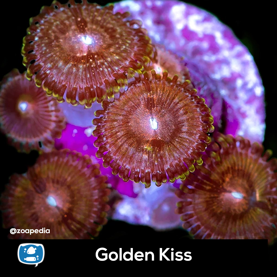 Golden Kiss ├® um zoanthus. Suas cores incluem multicolor, dourado.