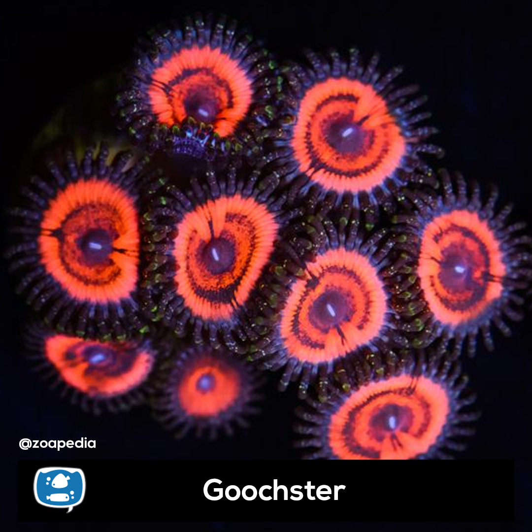 Goochster ├® um zoanthus. Suas cores incluem vermelho, multicolor.