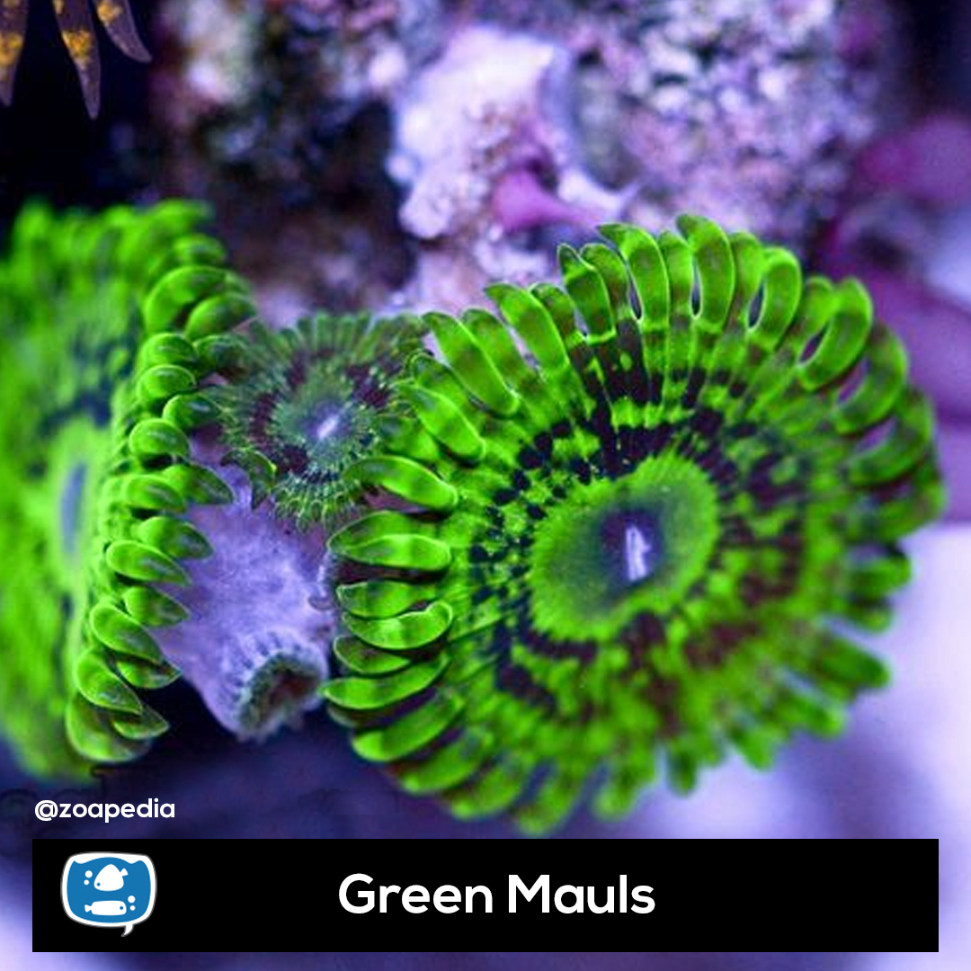 Green Mauls ├® um zoanthus. Suas cores incluem verde, preto.