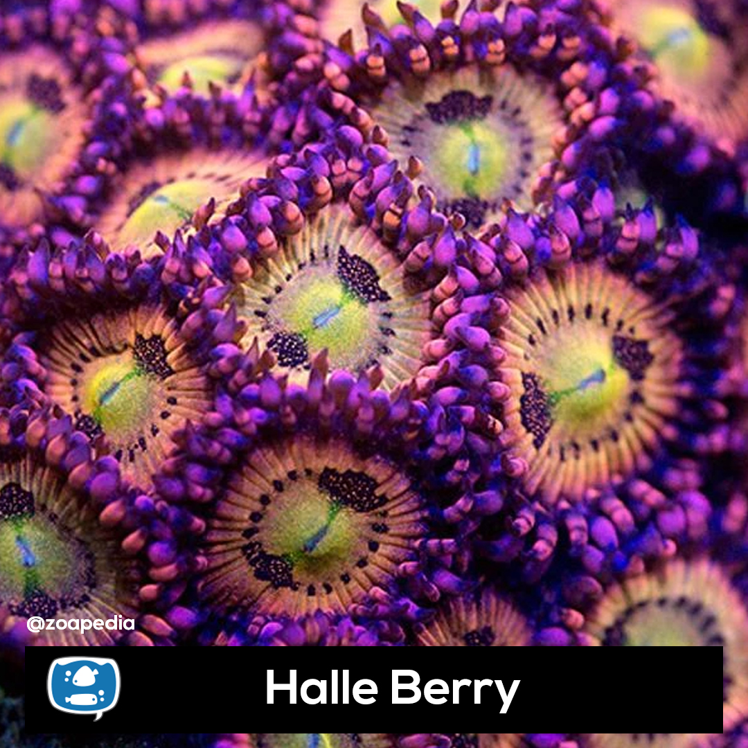 Halle Berry ├® um zoanthus. Suas cores incluem amarelo, laranja, roxo.