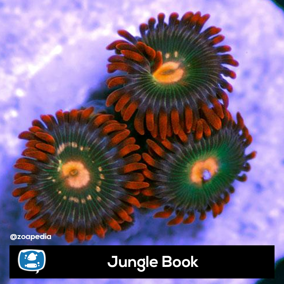 Jungle Book ├® um zoanthus. Suas cores incluem laranja, verde.