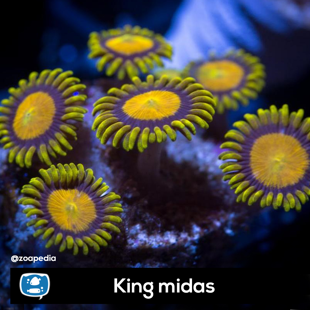 King Midas ├® um zoanthus. Suas cores incluem dourado, roxo.