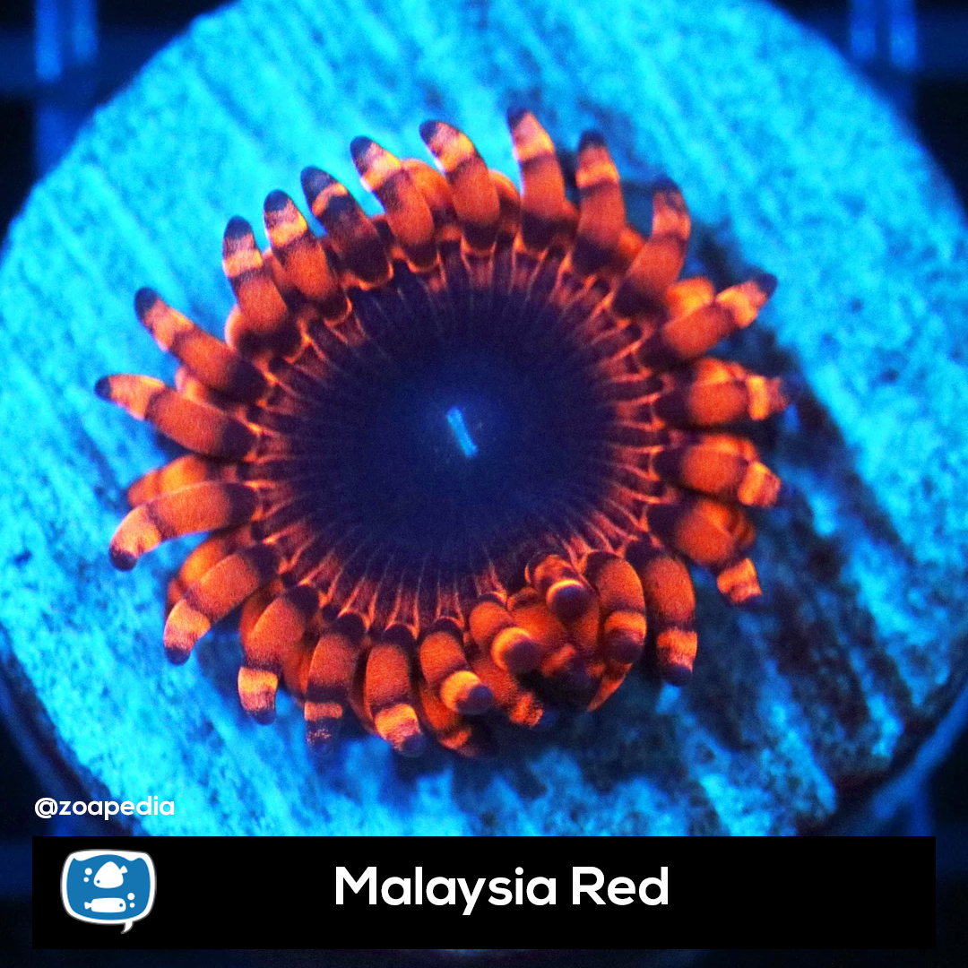 Malaysia Red ├® um zoanthus. Suas cores incluem azul, vermelho.