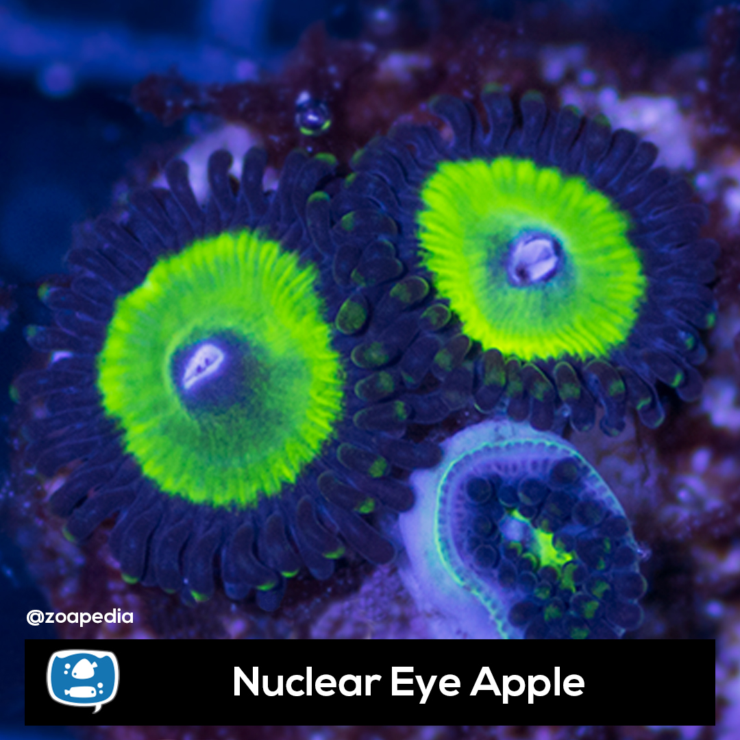 Nuclear Eye Apple ├® um palythoa. Suas cores incluem azul, verde.