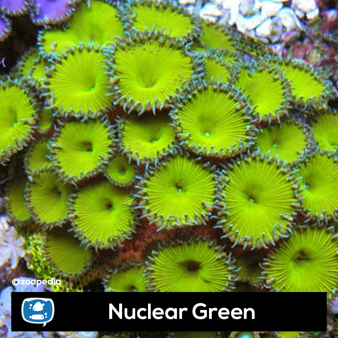 Nuclear Green ├® um zoanthus. Suas cores incluem verde.