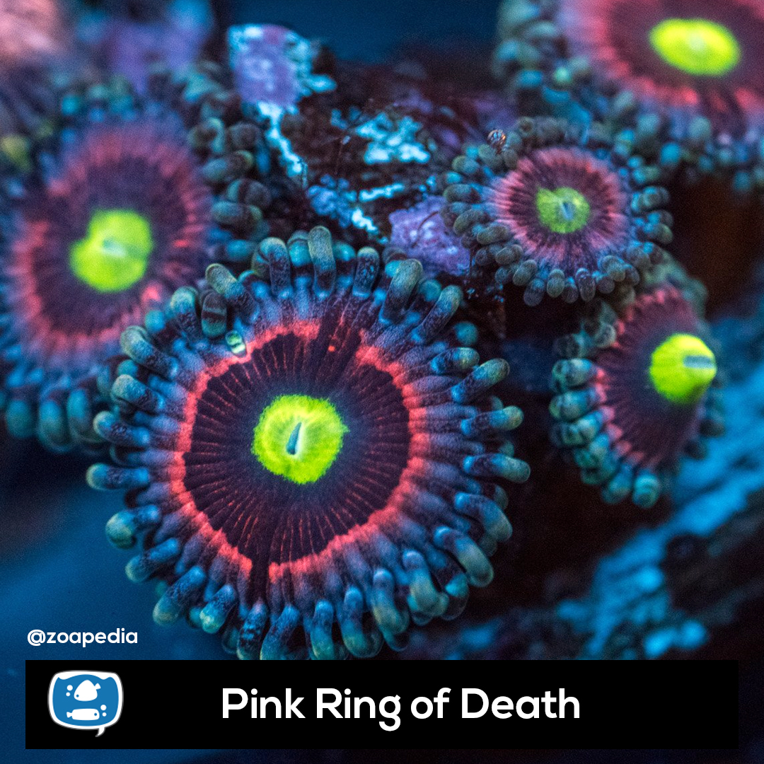 Pink Ring of Death ├® um zoanthus. Suas cores incluem verde, preto, rosa, multicolor.