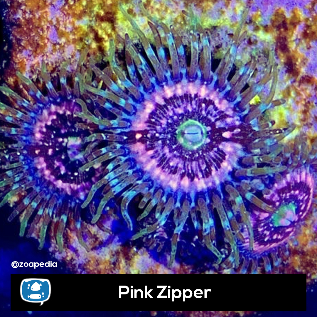 Pink Zipper ├® um zoanthus. Suas cores incluem verde, multicolor.