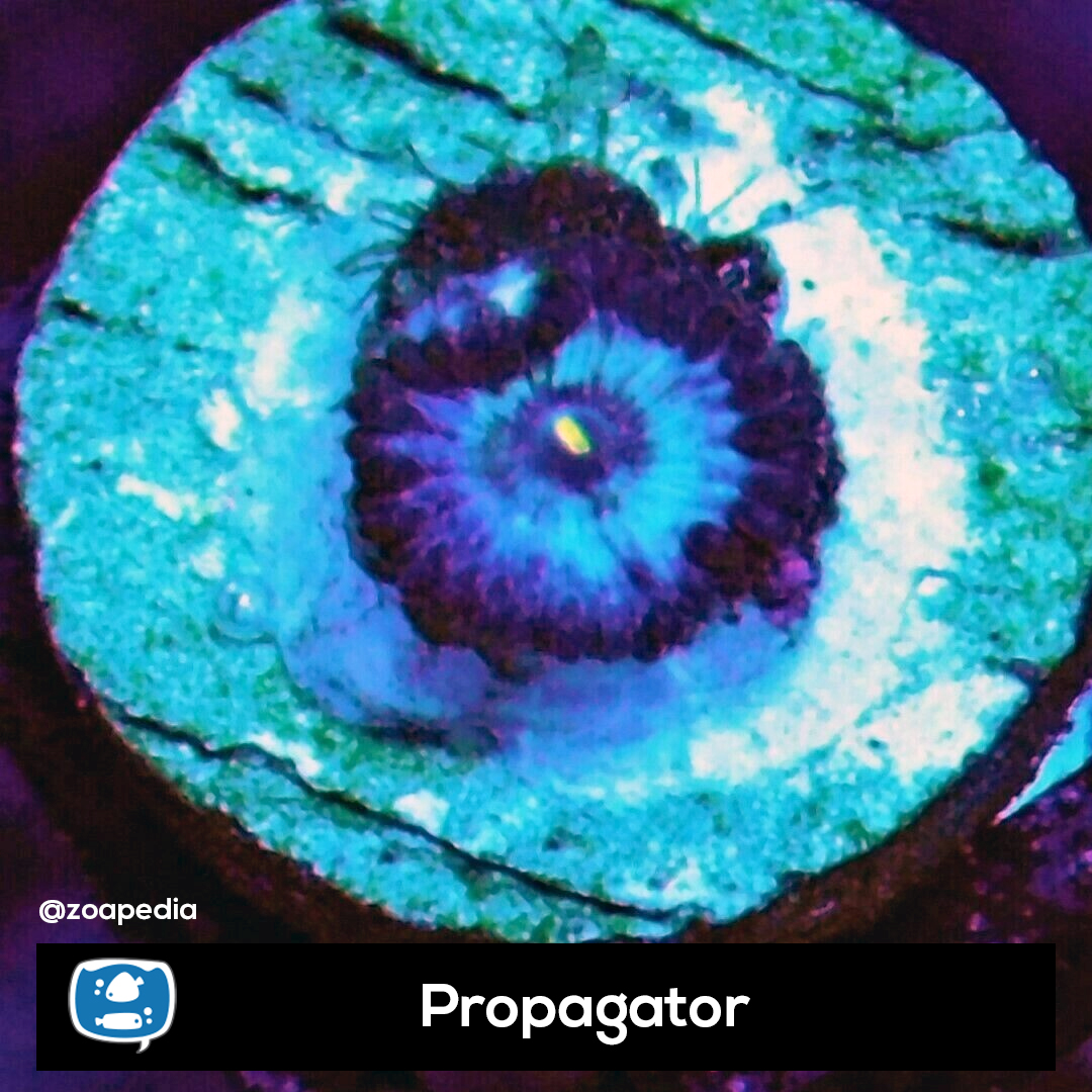 Propagator ├® um palythoa. Suas cores incluem azul, roxo.