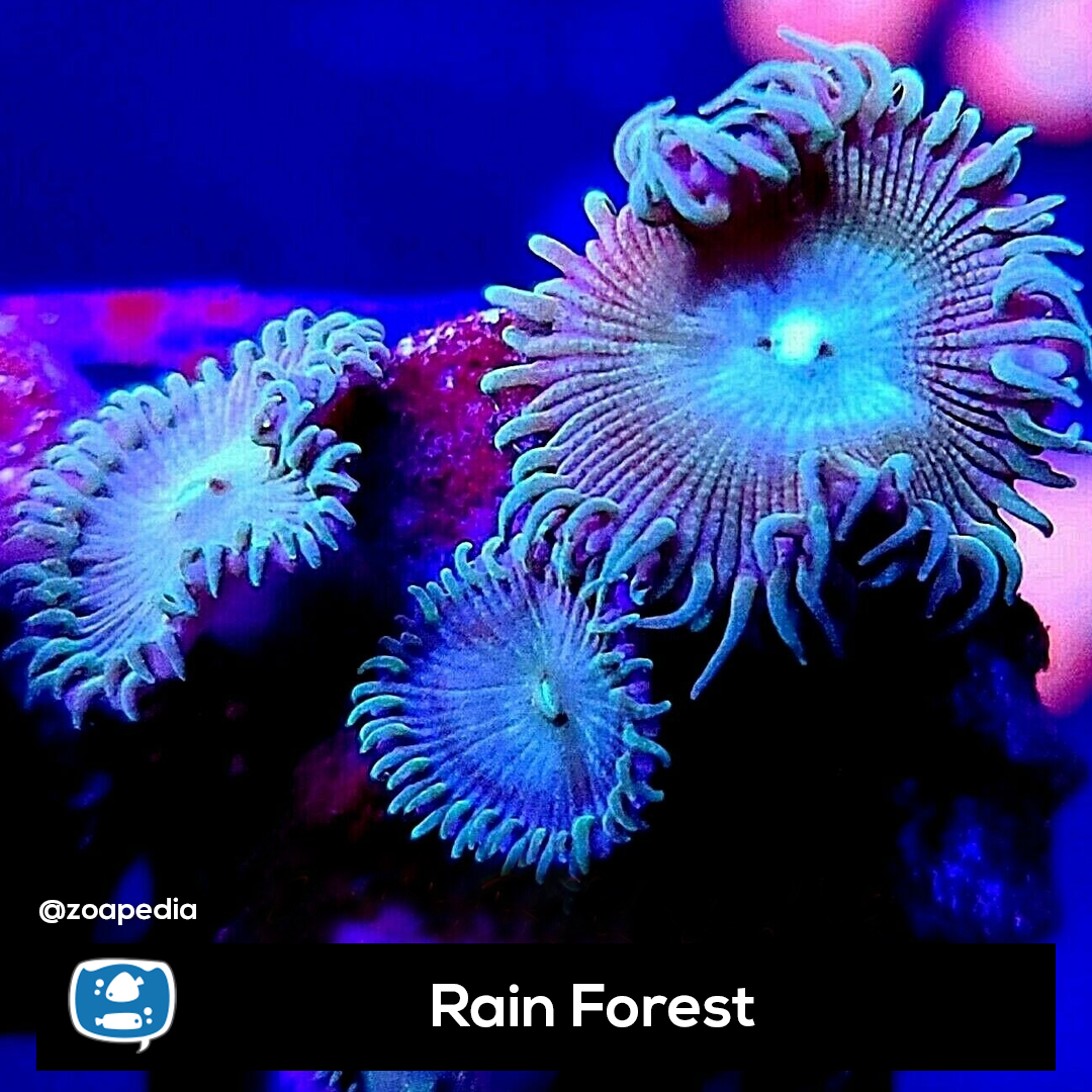 Rain Forest ├® um zoanthus. Suas cores incluem verde, roxo.