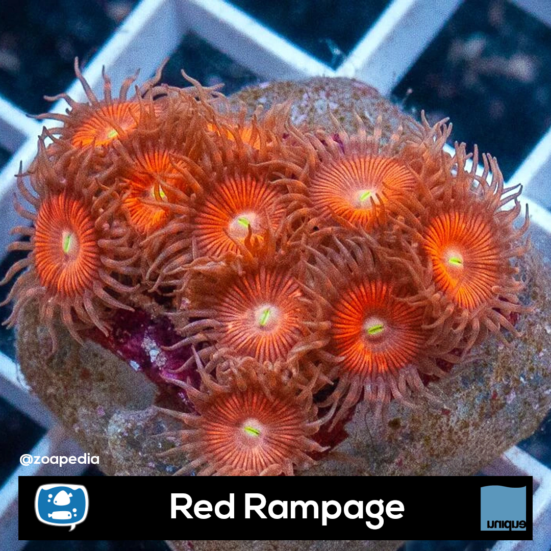 Red Rampage ├® um zoanthus. Suas cores incluem amarelo, vermelho.