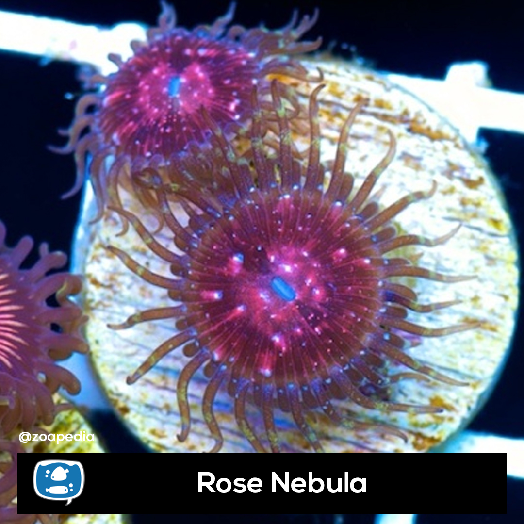 Rose Nebula ├® um zoanthus. Suas cores incluem rosa, roxo, azul, verde.