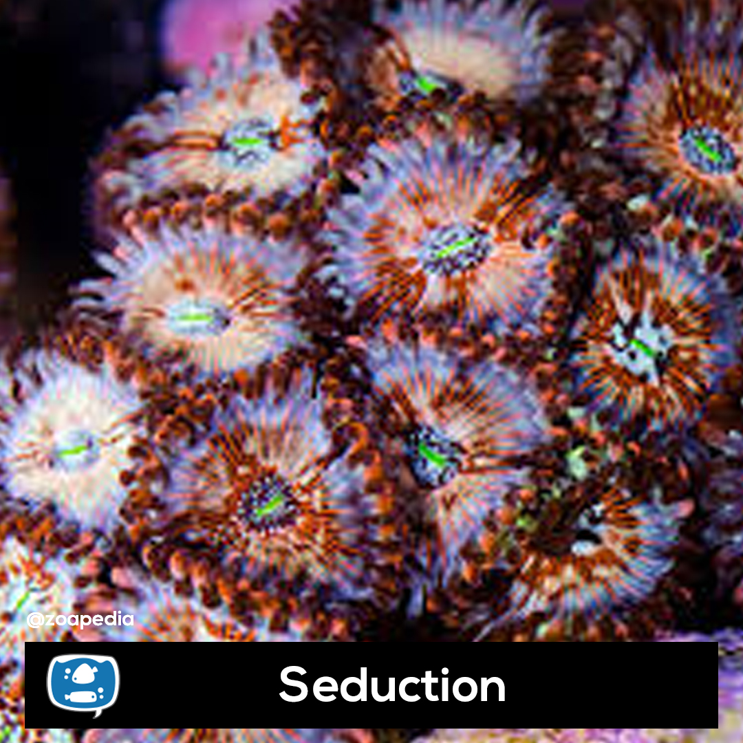 Seduction ├® um zoanthus. Suas cores incluem azul, vermelho, multicolor.