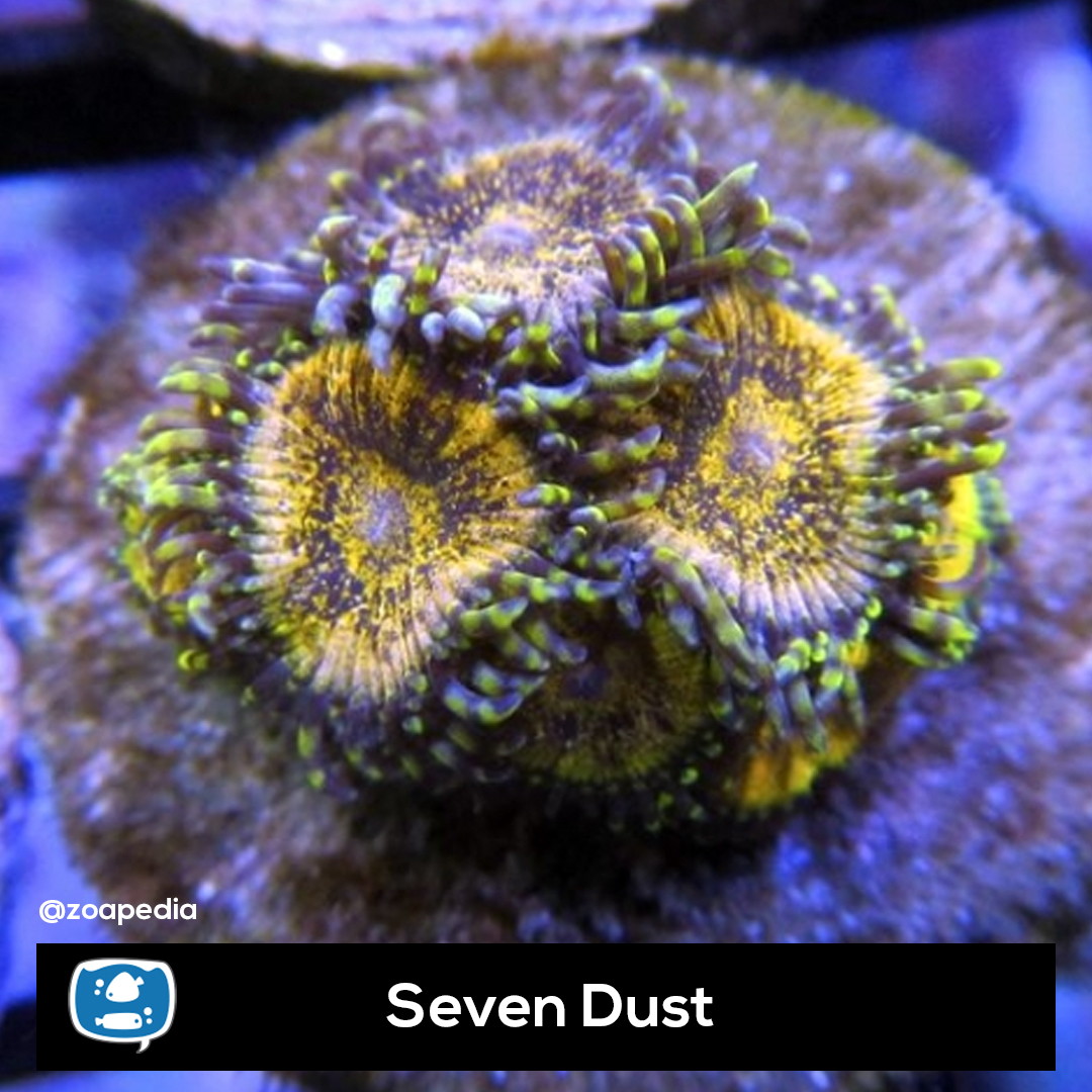 Seven Dust ├® um zoanthus. Suas cores incluem dourado, multicolor.