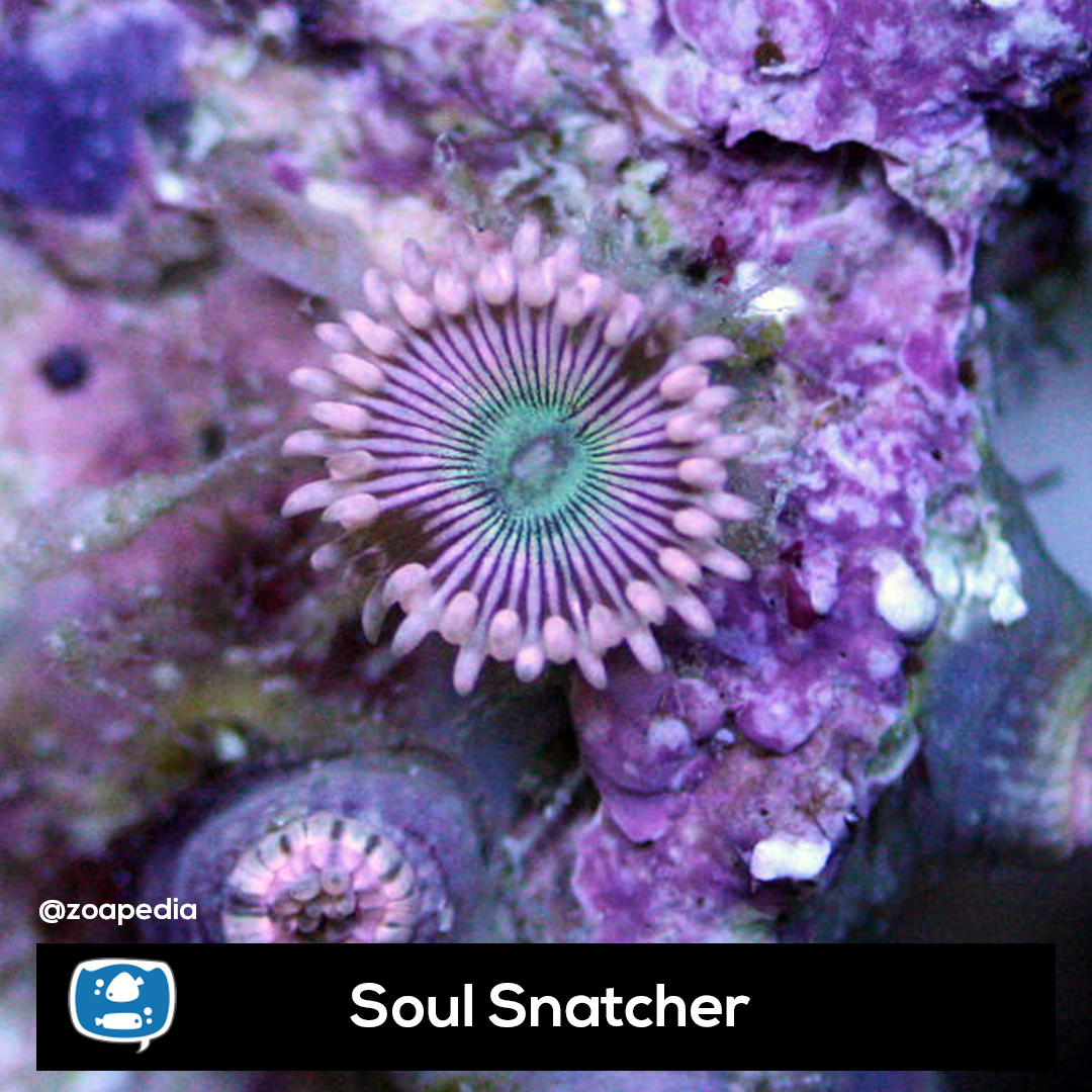 Soul Snatcher ├® um zoanthus. Suas cores incluem verde, rosa.