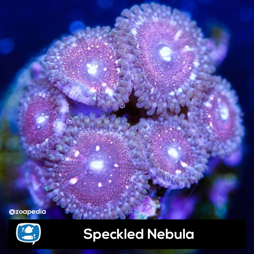 Speckled Nebula ├® um zoanthus. Suas cores incluem roxo.