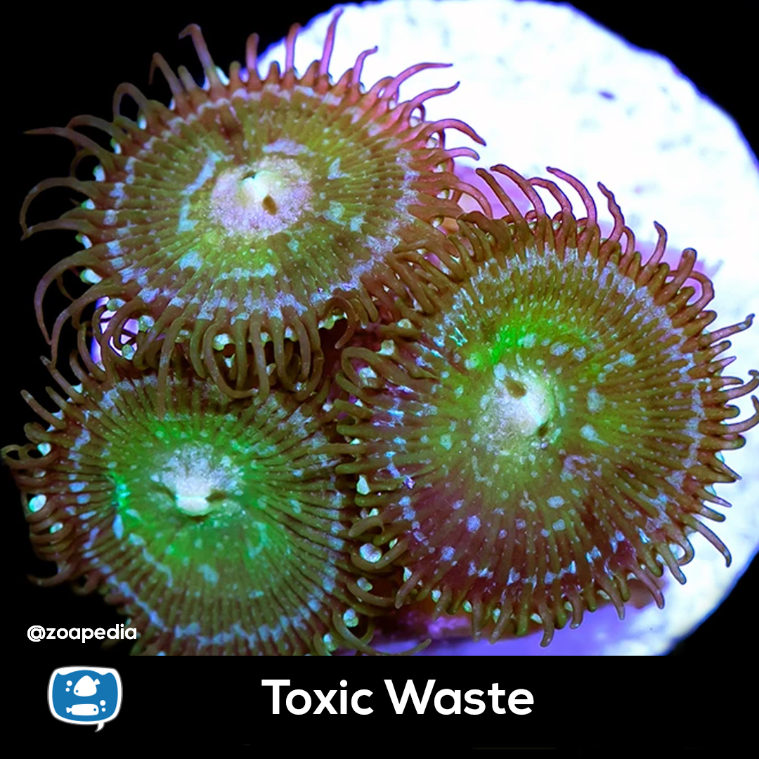 Toxic Waste ├® um zoanthus. Suas cores incluem verde, azul.
