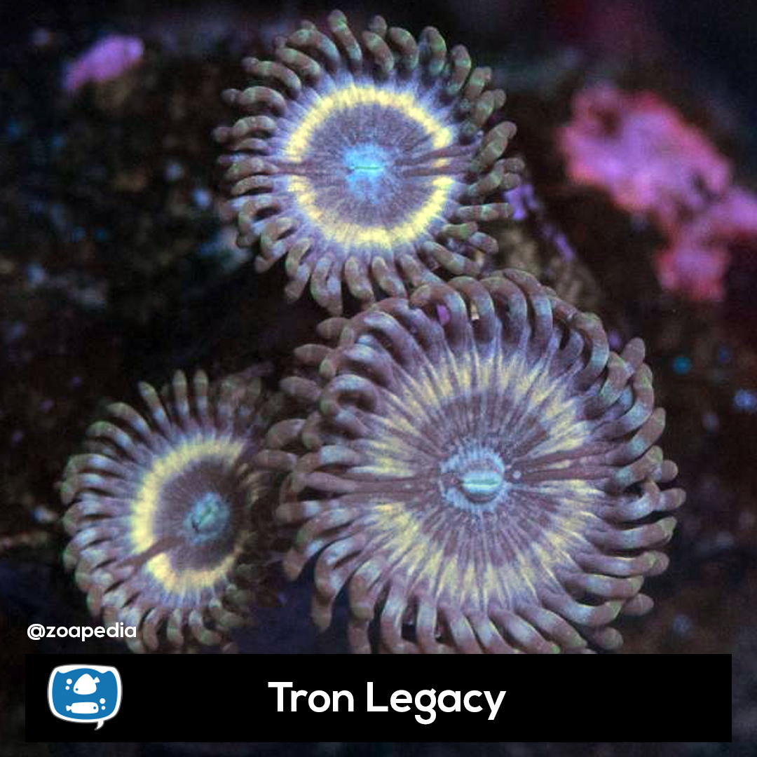 Tron Legacy ├® um zoanthus. Suas cores incluem azul, multicolor, amarelo.