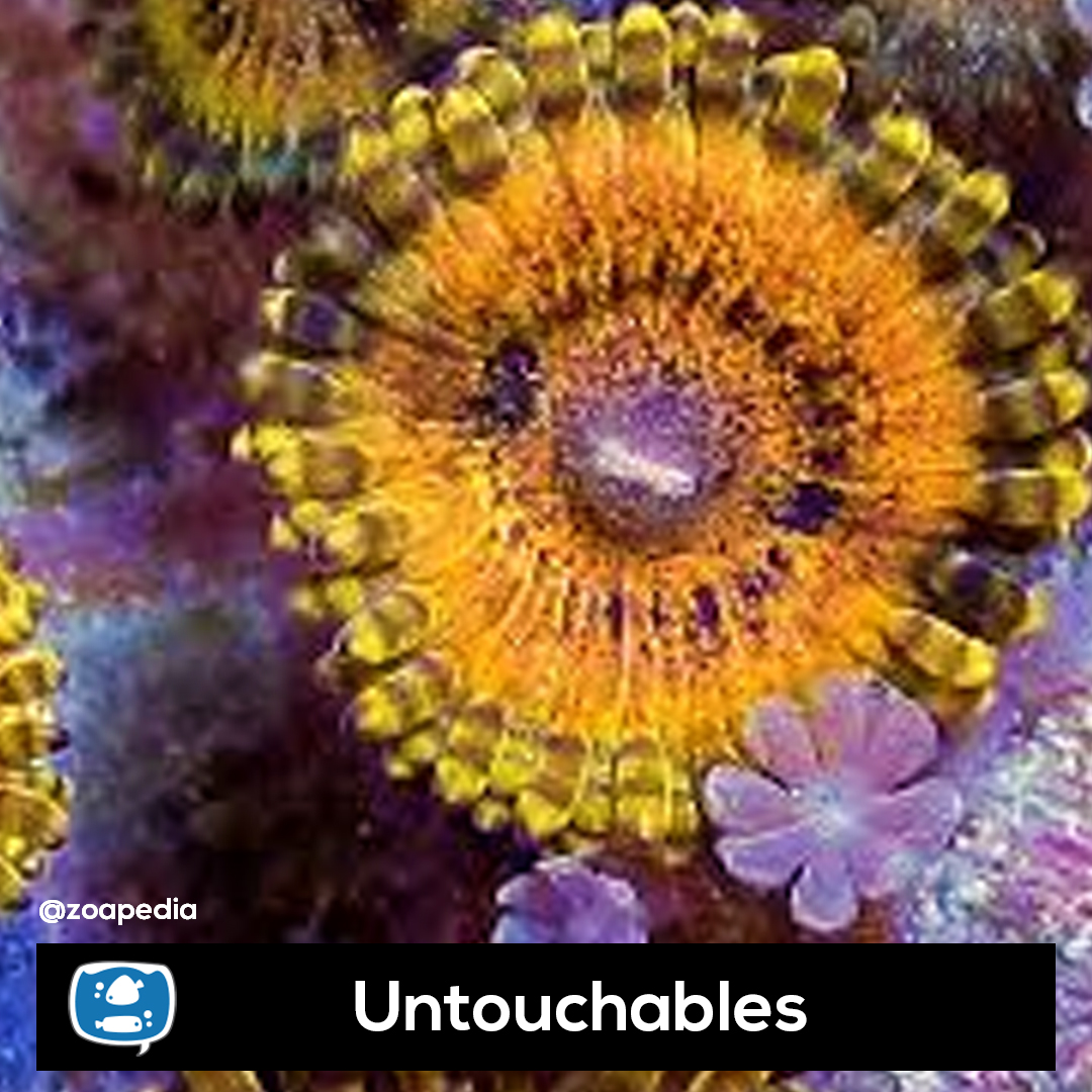 Untouchables ├® um zoanthus. Suas cores incluem dourado.