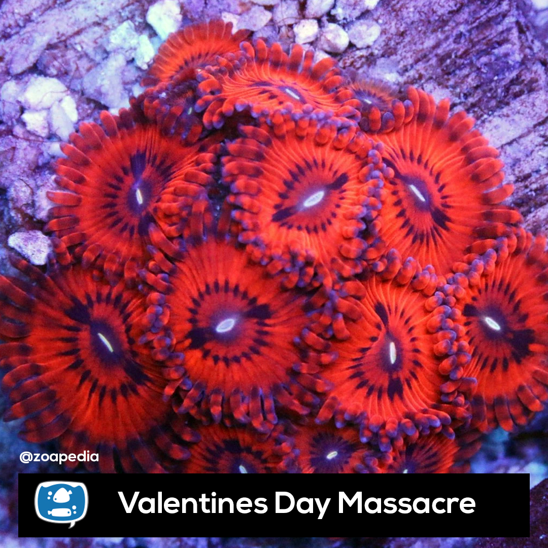 Valentines Day Massacre ├® um zoanthus. Suas cores incluem vermelho.