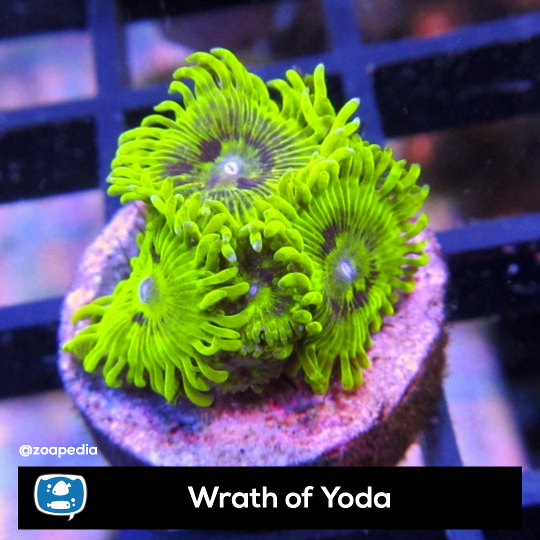 Wrath of Yoda ├® um zoanthus. Suas cores incluem verde.
