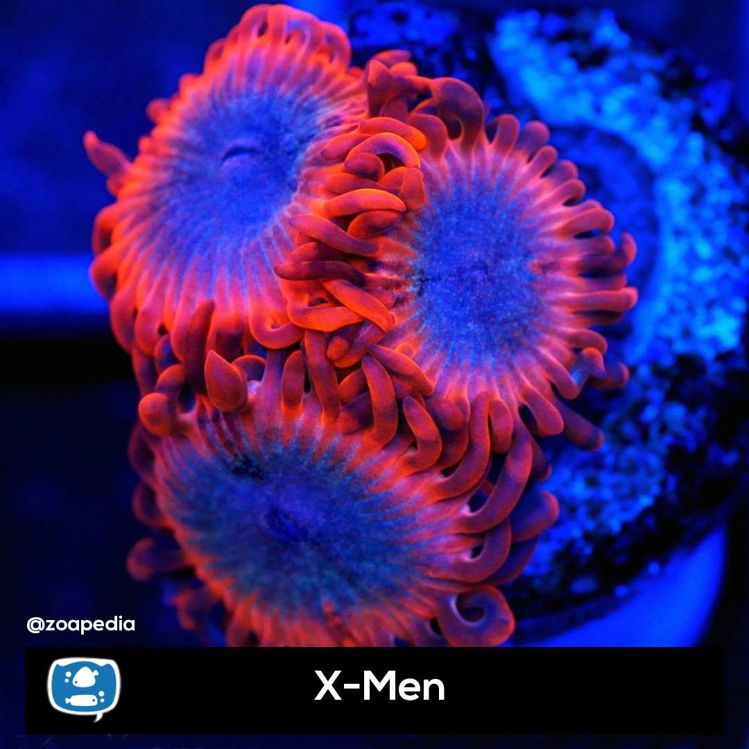 X Men ├® um zoanthus. Suas cores incluem azul, vermelho.
