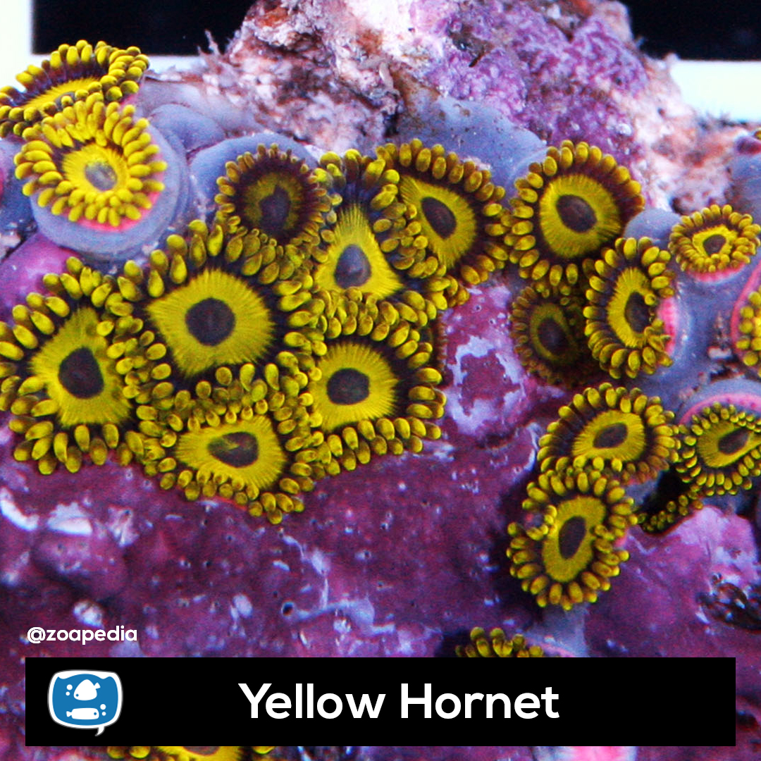 Yellow Hornet ├® um zoanthus. Suas cores incluem preto, amarelo.